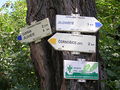 Rozcestník turistických značek v Kazíně. |