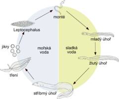 - ↑ CUNNINGHAM, J. T. The Larva of the Eel [PDF]. [cit. 2007-11-09]. Dostupné online. (anglicky)