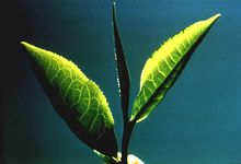 Listy čajovníku jsou dlouhé od tří do pětadvaceti centimetrů a široké mezi jedním a deseti centimetry, dospělé listy jsou tlusté, hladké a kožnaté, s krátkým řapíkem. Čajové lístky se většinou sbírají několikrát do roka, v některých oblastech prakticky celý rok. Lístky se sbírají podle takzvaných sběrových formulí, které určují, kterou část výhonku uštípnout. Obvykle jsou cennější mladší menší lístky u špičky výhonku a pupen. Čaj obsahuje kofein, známý také jako tein.