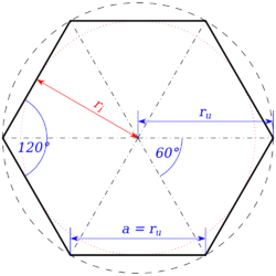 Vnitřní úhly pravidelného šestiúhelníku (všechny strany a úhly jsou si rovné) mají velikost 120°. Stejně jako čtverce a rovnostranné trojúhelníky, lze i šestiúhelníky poskládat vedle sebe bez mezer a zcela tak vyplnit rovinu. Tímto způsobem jsou vytvářeny včelí plástve.