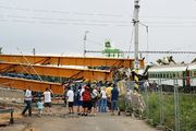 Dne 8. srpna 2008 dopoledne probíhaly [3] přípravy na zasunutí konstrukce mostu. Stavební firma nevyhodnotila tyto činnosti jako natolik závažné, aby o nich informovala provozovatele dráhy (od 1. 7. 2008 SŽDC) a žádala ho o omezení provozu, takže vlaky po trati jezdily plnou rychlostí. Omezení dopravy a zvláštní dozor si stavbaři vyžádali až na večer.[4]