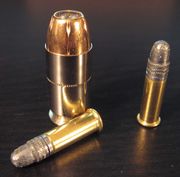I při použití neexpanzivní střely je tento náboj efektivní vůči lidským cílům. Díky svému rozměru totiž při průletu tkáněmi vytvoří velký a poměrně trvalý střelný kanál. V několika poslední desetiletích se objevily moderní střely typu hollow-point (HP), které měly zvýšit expanzivní potenciál střely a tím i pravděpodobnost zastavení útočníka. Bohužel vzhledem k nízké úsťové rychlosti střely, je expanze nespolehlivá. Výjimkou je varianta +P (používá vyšší tlak při výstřelu, než je podle specifikace dovoleno) se skoro 20% vyšší rychlostí.