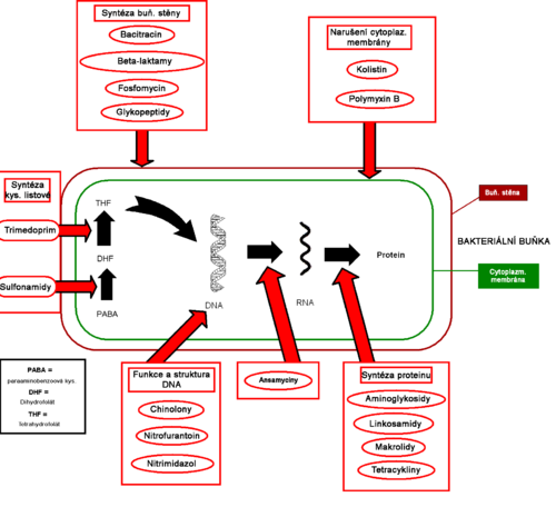 Protože antibiotika jsou heterogenní skupinou látek s různými účinky na bakterie, dělí se na několik tříd podle chemické struktury.[7][8]