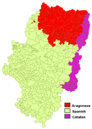 Vedle španělštiny, která zde převažuje a je také úředním jazykem, se zde hovoří v některých pyrenejských údolích v provincii Huesca aragonsky, na východě Aragonie pak katalánsky.