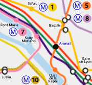Jméno stanice je odvozeno od názvu zdejší městské čtvrti, která spadá do 4. arrondissementu. Od roku 1533 se podél Seiny a u městských hradeb rozkládala královská zbrojnice - Arsenal du Roi. Za Ludvíka XIV. sloužil Arsenal jako soudní budova. V roce 1797 zde byla založena knihovna - Bibliothèque de l'Arsenal, která je dnes součástí Francouzské národní knihovny.