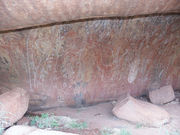 Austrálci odedávna ztvárňují své fantazie na dominantách krajiny včetně skal a jeskyní. Mnoho jejich děl je tisíce let starých. I když často jsou tyto obrazy přemalovány, aby se barvy oživily. Skalní umění znázorňuje převážně každodenní život a činnosti domorodců, ale hlavně jejich náboženskou víru. Při své tvorbě Austrálci používají 4 základní barvy: