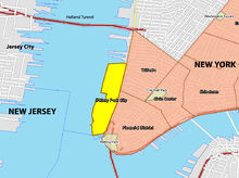 Battery Park City je ohraničena West Street na východě, na západ, na sever a na jih je obklopena řekou Hudson.