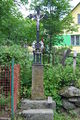 - Vedle zvonice se nalézá kříž. Na patě kříže nad hlavou andělíčka je umístěná kulatá deska s nápisem : POCHVÁLEN BUĎ JEŽÍŠ KRISTUS.