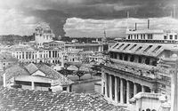 | Cesta k jednání o kapitulaci spojeneckých sil v Singapuru 15. února 1942. Zleva doprava: Major Cyril Wild (s bílou vlajkou), brigádní generál Newbigging (s vlajkou Velké Británie), podplukovník Ichiji Sugita, brigádní generál Torrance a generál Arthur Percival. Jednalo se o největší kapitulaci sil vedených Brity v historii. | |||||||||||||||