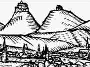 Hrad Buchlov s kaplí sv. Barbory na výřezu z dřevorytu Uherského Hradiště (J. Willenberg, 1593)