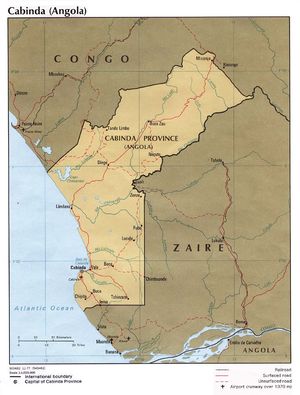 V roce 1885 byl smlouvou ze Simulambuco ustaven nad Cabindou portugalský protektorát. Byla nezávislá na Angole, dokonce s ní nakrátko měla přímou hranici tvořenou řekou Kongo. Ještě v témže roce bylo na Berlínské konferenci o Africe rozšířeno území Konga až do ústí stejnojmenné řeky, a tak Cabindu od Angoly oddělilo.