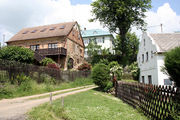 Domy v Dobré Vodě, v pozadí bývalá škola
