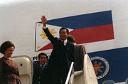 Díky stannému právu se mohl vypořádat bez velkých formalit se svými politickými protivníky, které dal většinou uvěznit a mezi nimiž byl i Benigno Aquino. V r. 1973 Marcos vyhlásil novou Ústavu, podle níž měl nadále vykonávat současně funkci presidenta i předsedy vlády. V roce 1981 byl při dalších presidentských volbách (po 12 letech) znovu zvolen, zrušil stanné právo a přistoupil k ústavní reformě. Oposice proti jeho režimu však sílila, zejména od r. 1983, po zavraždění B. Aquina, který se po třech letech vracel z amerického exilu. Vdova po Aquinovi, Corazón Aquinová, ho ve volbách v r. 1986 porazila, a třebaže Marcos odmítal její vítězství uznat, podpora vojska, jíž se těšila Aquinová, jakož i masové lidové protesty ho donutily utéci i s nejbližšími spolupracovníky do exilu na Havaji, kde mu umožnil asyl tehdejší americký president Reagan – údajně i s 24 kufry plnými zlatých cihel a šperků.