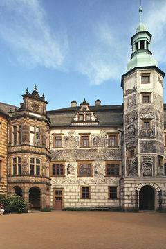 Bedřich sám si svého nového panství příliš neužil, zemřel totiž roku 1564 a majetek po něm zdědili jeho synové Jan Jiří, Sebastian, Fabian, Kryštof a Melchior. Po smrti svých bratří (posledním z nich byl Kryštof 3. září 1591) převzal veškerou správu rodového majetku Melchior z Redernu. Již předtím, roku 1582, zahájil Melchior se svou ženou Kateřinou mohutnou přestavbu a rozšíření dosavadního sídla na reprezentativní renesanční palác. Stavební práce svěřili italskému staviteli Marku Antoniovi de Lanzio. Ten pokračoval v krocích započatých již Biberštejny, na místě původního gotického paláce a jeho přístaveb vystavěl novou budovu (zvanou „horní zámek“), jejíž interiéry nechal vyzdobit štukem a jejíž okna a dveře dostaly renesanční ostění. Hradní věž dostala během úprav renesanční helmici a střechy byly ozdobeny volutovými štíty.