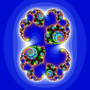 | Dokonce 2000 násobné zvětšení Mandelbrotova fraktálu nesníží kvalitu nejjemnějších detailů jež stále mají charakteristický tvar celého obrazce. |