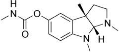Protože je terciárním aminem (a tedy netvoří vodíkové můstky), může procházet přes hematoencefalickou bariéru. Salicylát fysostigminu se používá k léčbě předávkování atropinem, skopolaminem a jinými anticholinergiky.