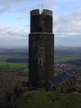 Dolnímu hradu dominuje oválná Černá věž. Její průměr je 9 m, přičemž její zdi mají dvoumetrovou tloušťku. Je vysoká 25 m a je postavená z tmavého čediče. Zhruba ve 2/3 výšky je zdivo oslabeno ústupkem, který sloužil jako ochoz rozšířený ještě pomocí krakorců. Věž byla přístupná pouze v úrovni prvního poschodí prostým portálem, snad po dřevěné pavlači z nedochovaného paláce. Věž dodnes elasticky obemykají zbytky hradby, ale o další podobě zástavby lze bez provedeného archeologického průzkumu pouze spekulovat.[1]