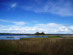 Pobřeží je nízké, členité, porostlé skřípincem.