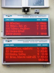 V září 2009 byla zprovozněna služba informací o odjezdech z konkrétní zastávky pomocí WAPu nebo webu, přičemž jsou využity nejen jízdní řády, ale i aktuální informace o skutečné poloze vozidla.[2][3] IDS JMK na svém webu uvádí, že jeho služba, spuštěná v září 2009, je první tohoto druhu v České republice. (Pilotně byla podobná služba pouze pro služební potřebu řidičů střídajících na trati pro vybraných 38 zastávek od 1. listopadu 2006 zavedena u pražských tramvají[4] – v den 22. září 2007 u příležitosti dne otevřených dveří byla přístupná i veřejnosti[5]).