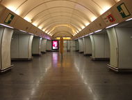 Obklad ve stanici je perleťové/bílé sklo. Výstavba stanice probíhala mezi lety 1986–1990 a stála 308 mil. Kčs.