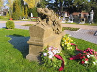 - Ukřižovaný na kamenném podstavci s reliéfem ve čtvrti Na obci