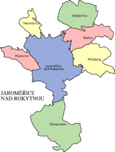 Město Jaroměřice nad Rokytnou má sedm místních částí: