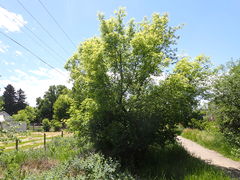 Větve krátké, příkře vzpřímené a rozložené, místy vystoupavé. Letorosty hráškově zelené barvy, ojíněné a úplně lysé.