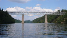 Most přes Vltavu byl vystavěn v letech 1886 - 1889, otevřen byl potom 20. listopadu 1889. Je 253 metrů dlouhý, 68 metrů vysoký, váží 940 tun a obsahuje 329 000 nýtů. Most vyrobila Pražská mostárna za 510 000 zlatých. Je to první železniční most v ČR, který byl vystavěn bez lešení pouze letmou montáží.
