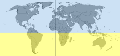 - Afrika (přibližně 1/3 - hranici tvoří jižní část města Libreville v Gabonu na západě a jih Somálska na východě)