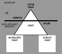 - strukturální násili – systém opatření, kterými ten který režim omezuje rozvoj individuí jím ovládaných a jemu podřízených subjektů, a zabraňuje, aby dosáhly svých plných možností. Součástí takových represivních systémů jsou např. podpora nebo využívání rasismu, sexismu, xenofobie a jiných forem dělení a ovládání společnosti.