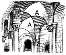 Už v románské architektuře se na hranách tohoto průniku objevují žebra, která klenbu odlehčují a usnadňují její konstrukci.