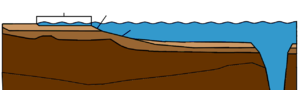 Okraj šelfu může být proti pevninskému svahu ohraničen tektonicky (pacifické pobřeží Ameriky), korálovými útesy (v tropických a subtropických částech světového oceánu), solnými diapiry (Mexický záliv), může být formován glaciální erozí a akumulací (v polárních oblastech) či tvořen říčními náplavy (deltovými sedimenty).