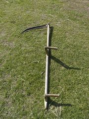 Kosa určená ke sklizni obilí při žních bývala navíc vybavena na kosišti rámem, který zajišťoval padání klasů do řad. To pak usnadňovalo následné vázání obilí do snopů.