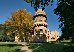 • Minaret – romantická stavba z let 1797–1802 postavená v maurském slohu podle projektu J. L. Hardtmutha o výšce 60 m. Z jednopatrové hranolové budovy, v přízemí prolomené 12 arkádami, vyrůstá štíhlá věž, členěná třemi ochozy. Z věže je vidět Janův hrad a okolí.