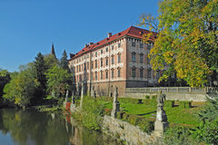 Východní strana dvoupatrové budovy ve směru do parku má balkón se sloupy a se schodištěm, který byl však přistaven až koncem 19. století. Severní průčelí ve směru do náměstí města je zúženo gotickou kaplí. Na tomto průčelí je také zámecký portál, na vrcholu ozdobený ditrichštejnským znakem. Za pozornost stojí vnitřní vybavení. Nádvoří s parkem spojuje sala terrena, jejíž neobvyklá výzdoba pásy reliéfů s mořskými tvory a pásy s lesklými mořskými škeblemi v klenbě je nejspíš dílem italských umělců Jacoba Tencally a Giuseppa Mattoniho. Malby amorků v klenebních polích a zřícenin na zdech pocházejí z 18. století, kdy byl dokončen i největší prostor celého zámku, nazývaný Saturnův sál. V něm za pozornost stojí velký krb, jehož římsu nesou dvě figuríny černochů. Na výzdobě krbu se podílel Jan Brokoff, otec Ferdinanda Maxmiliána Brokoffa. Nad krbovou římsou je štuková postava Saturna s amorky. Nejspíš jde o dílo italského z okruhu spolupracovníků Antonia Porty.