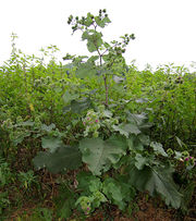 Lopuch větší (Arctium lappa) je dvouletá bylina z čeledi hvězdnicovité, roste jako plevel často na smetištích a kolem cest. Silný kůlový kořen sahá do hloubky až 70 cm. Lodyha je silná, rýhovaná, vyplněná dření. Listy jsou velké, široce srdčité, řapíkaté, řapík rovněž vyplněn dření. Přízemní listy s čepelí až 50 cm dlouhou a 40 cm širokou. Lodyžní listy jsou střídavé, menší než přízemní, oboje na spodní straně s bílým povlakem chlupů, celokrajné. Nachově červené trubkovité květy v kulovitých úborech průměru 3 až 3,5 cm, jejichž zákrov je tvořen listeny s hákovitou špičkou.