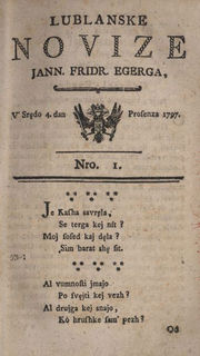 - ↑ 2,0 2,1 2,2 SENIČAR MULEC, Metka. Slovenska beseda in prvi oglasi v tisku v deželi Kranjski [pdf]. Ljubljana : Univerza v Ljubljani, 2005, [cit. 2011-02-04]. S. 21. Dostupné online. (slovinsky)
