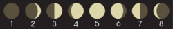 - První čtvrť. Po novu před úplňkem má Měsíc tvar písmene D, říká se o něm, že dorůstá.