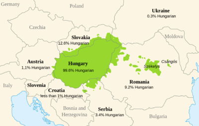 Maďarština je také oficiálně uznaný jazyk většiny obyvatel nebo jako regionální jazyk v Rakousku, Chorvatsku a na Slovensku.