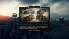 Hráči, kteří si hru předobjednali, mohli obdržet další návrh Magnum Opus nazvaný "The Ripper". Hráči, kteří si zakoupili hru pro PlayStation 4, mohli získat přístup k exkluzivní části obsahu, dále "Road Warrior Survival Kit". Road Warrior Survival Kit obsahuje dvanáct různých obleků pro Maxe. Exkluzivita tohoto obsahu skončila dne 30. listopadu 2015.