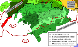 Vnitřní Západní Karpaty, Malé Karpaty vyznačeny červeným polem
