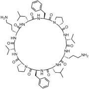 Neribozomální peptid je peptid (oligomer tvořený řadou aminokyselin), který není syntetizován v ribozomu, ale pomocí jiných enzymatických buněčných komplexů (syntetáz). Není potřeba žádná mRNA ani tRNA, přičemž každý enzym je schopen vyrábět pouze jeden typ peptidu. Syntézy těchto peptidů jsou schopny zejména některé bacily a aktinomycety, ale i vláknité houby.[1] Ke známým neribozomálním peptidům patří cyklosporin, gramicidin, erytromycin a vankomycin, tedy látky, které člověk využívá jako antibiotika k boji s bakteriálními onemocněními.[1] Například gramicidin S produkuje bakterie Bacillus brevis. Je to cyklický dekapeptid složený ze dvou stejných pentapeptidů a vzniká díky práci dvou enzymů, označovaných jako EI a EII. K aktivaci aminokyselin se využívá hydrolýzy ATP za současného navázání aminokyseliny na enzym thioesterovou vazbou. Řetězec graminicinu obsahuje i neobvyklé ne-proteinogenní aminokyseliny, jako je ornithin.[2]