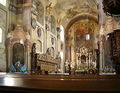 Klášter je spojovací chodbou svázán s kostelem sv. Petra a Pavla, postaveným na místě starého kostela z r. 1504. Kostel je 45 m dlouhý, 12 m široký v lodi a 9 m v presbytáři. Vnitřní stěny kostela jsou vyzdobeny freskami Jana Lukáše Krackera z let 1766–1767. Bohatá a vkusná malířská výzdoba je vhodně doplňována umělecky hodnotným mobiliářem. Skutečným klenotem jsou chórové lavice, dílo neznámého truhlářského mistra z r. 1696, a zejména o něco mladší kazatelna, dílo řezbáře Arbeita z r. 1700. Kazatelna je zdobena reliéfy čtyř evangelistů a množstvím ornamentů. Cenné zařízení kostela doplňují varhany, dílo novoříšského varhanáře Bedřicha Semráda z let 1764–1765, a boční kaple Panny Marie Bolestné s ostatky sv. Kandidy. Kaple bývala místem meditací básníka a zdejšího učitele Otokara Březiny. Konečně nelze opomenout křížovou cestu Františka Bílka a Viktora Förstra.