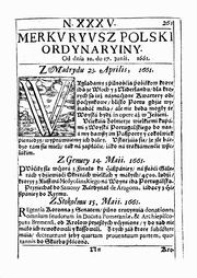 - 1661 vycházely v Krakově první polské noviny, Merkuriusz Polski Ordynarijny. Vycházely čtrnáctidenně, ale jen půl roku.