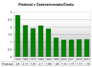 Velmi výmluvně pak současnou demografickou situaci v Česku dokresluje porovnání ukazatele úhrnné plodnosti. Zatímco v roce 1975 byla úhrnná plodnost 2,40, v roce 2000 to bylo jen 1,14 (po Ukrajině s 1,09 nejnižší v Evropě), v roce 2004 1,22 (po Bělorusku s 1,20 nejnižší v Evropě), v roce 2006 se zvýšila na 1,33, v roce 2007 na 1,44 a v roce 2008 na 1,50, což je hodně vzdáleno od hraniční hodnoty potřebné k zachování populace (2,1 potomků na jednu ženu), a v roce 2009 stagnovala, resp. se nepatrně snížila na 1,49[1].