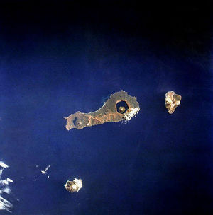Na jižním konci ostrova, na vulkánu Krenicyn (1 324 m n. m. - naposledy činný v roce 1952), se nalézá kráter Tao-Rusyr, jenž je zaplněn vodou a tvoří tak jezero Kaľcevoje (400 m n. m.) Na severním cípu ostrova se nalézá jezero Černoje, jež opět vyplňuje kráter, tentokráte vulkánu Nemo Peak (1 018 m n. m.), naposledy činného v 18. století.