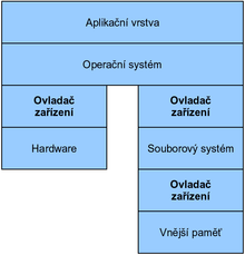- použití dalšího ovladače (např. ovladač souborového systému volá služby ovladače pevného disku)