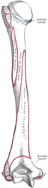 Na pažní kosti rozeznáváme tři hlavní úseky: horní, tedy proximální konec, tělo a dolní, distální konec kosti.