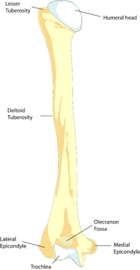 Má trubicovité tělo a s dva konce, kterými se kloubí s lopatkou na jedné straně a s kostí vřetenní a loketní.