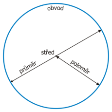 Průměr kružnice nebo kruhu je roven podílu obvodu a čísla π: